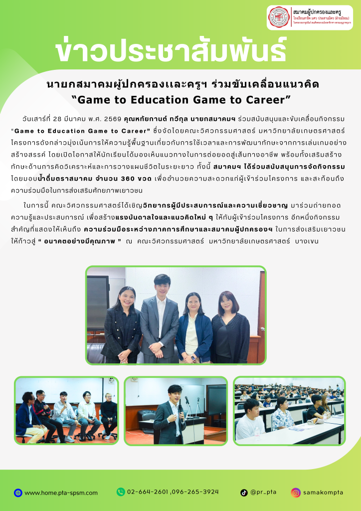 นายกสมาคมผู้ปกครองเเละครูฯ ร่วมขับเคลื่อนแนวคิด “Game to Education Game to Career”