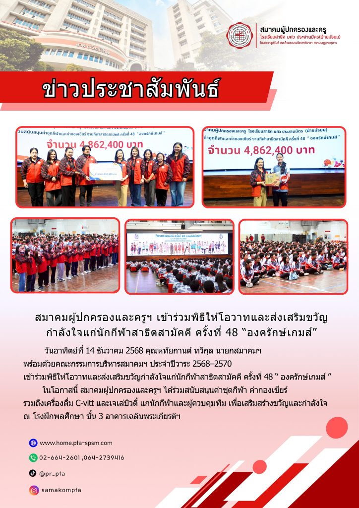 สมาคมผู้ปกครองและครูฯ เข้าร่วมพิธีให้โอวาทและส่งเสริมขวัญกำลังใจแก่นักกีฬาสาธิตสามัคคี ครั้งที่ 48 “องครักษ์เกมส์”by satit19 ธันวาคม 202519 ธันวาคม 2025