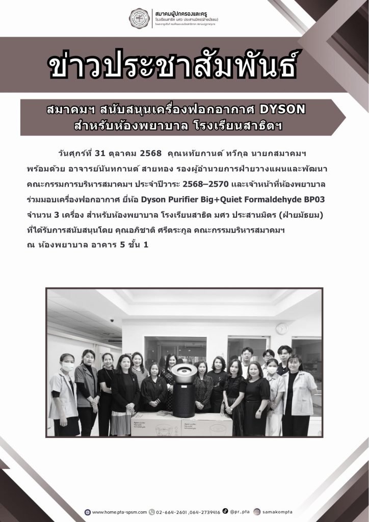 สมาคมฯ ร่วมมอบเครื่องฟอกอากาศ ยี่ห้อ Dyson Purifier Big+Quiet Formaldehyde BP03by satit3 พฤศจิกายน 20253 พฤศจิกายน 2025