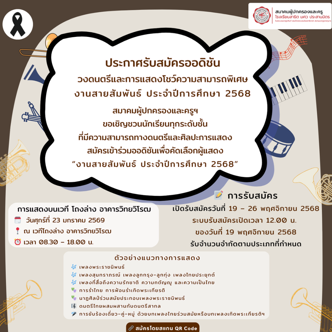 สมาคมผู้ปกครองและครู โรงเรียนสาธิต มศว ประสานมิตร (ฝ่ายมัธยม) ก่อตั้งเมื่อ พ.ศ. 2518 เพื่อสร้างความเข้าใจและแลกเปลี่ยนความรู้ระหว่างผู้ปกครองและครู สนับสนุนการมีส่วนร่วม ในกิจกรรมของโรงเรียน ส่งเสริมความร่วมมือ ด้านการศึกษา ศิลปวัฒนธรรม และกิจกรรมต่าง ๆ ช่วยเหลือพัฒนาจริยธรรม แก้ปัญหานักเรียน ส่งเสริมสวัสดิการของนักเรียนและสมาชิก รวมถึงร่วมมือกับองค์กรภาครัฐและเอกชนเพื่อพัฒนาความรู้ พฤติกรรม สุขภาพ และสวัสดิการ และสนับสนุนการดำเนินงานของโรงเรียน