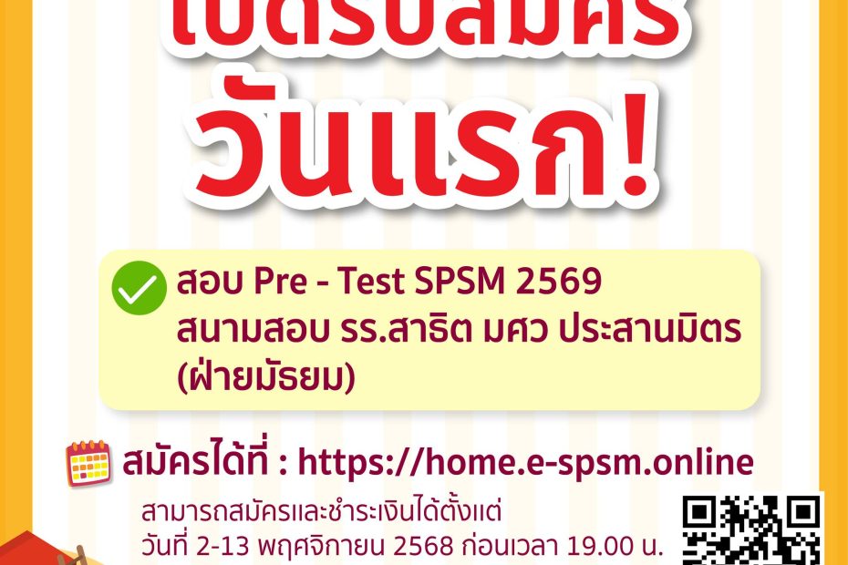 เปิดรับสมัครวันแรก สอบพรีเทส สาธิต มศว ประสานมิตร (ฝ่ายมัธยม) !!! PRASARNMIT Pre – Test M.1 (หลักสูตรการศึกษาขั้นพื้นฐาน) by satit3 พฤศจิกายน 20253 พฤศจิกายน 2025
