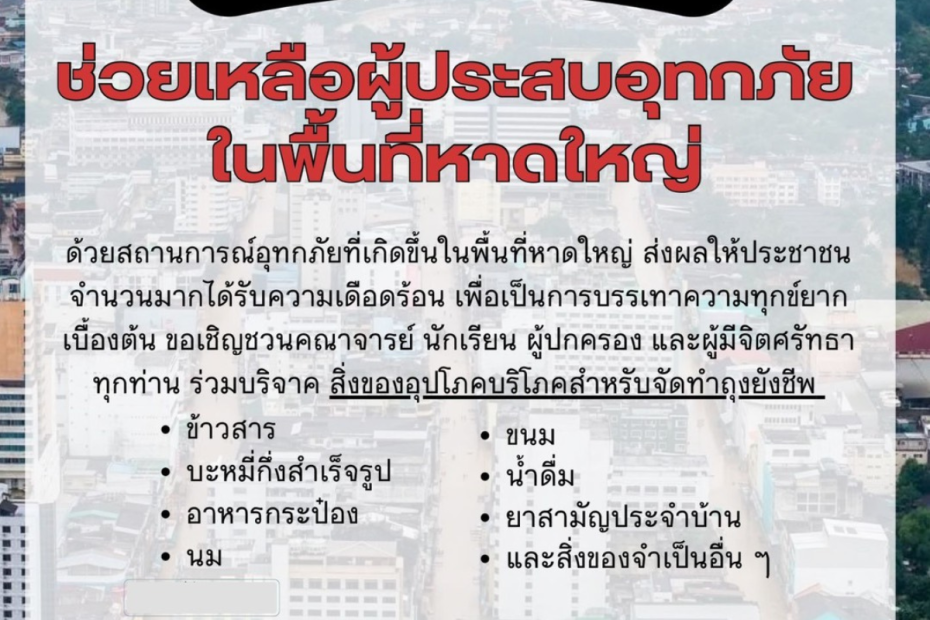 ขอเชิญชวนร่วมบริจาคช่วยเหลือผู้ประสบอุทกภัยในพื้นที่หาดใหญ่by satit26 พฤศจิกายน 202526 พฤศจิกายน 2025