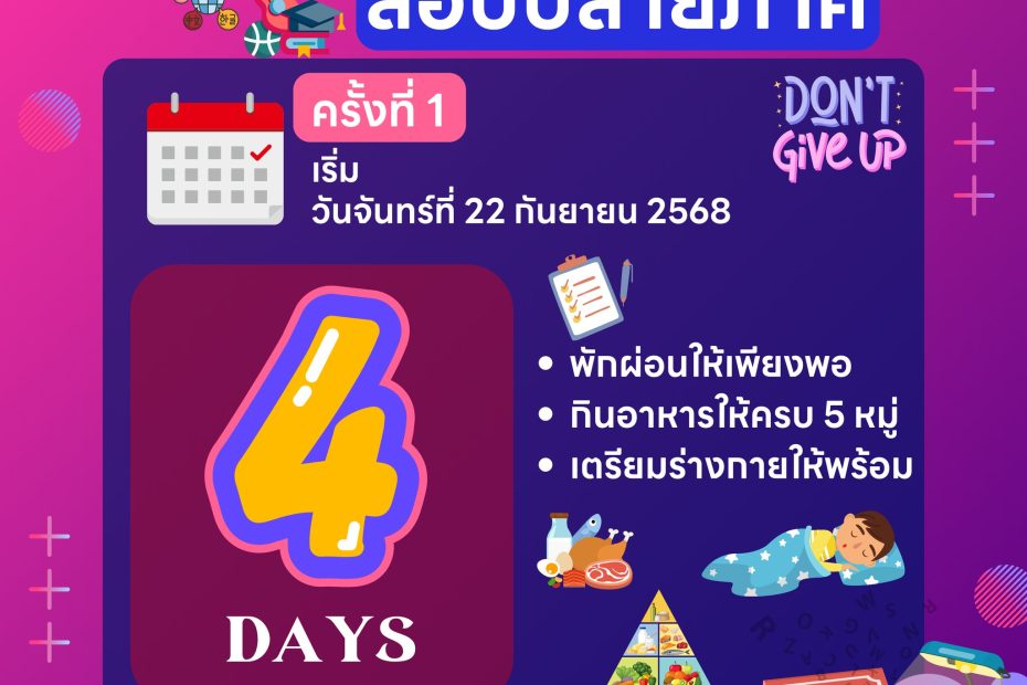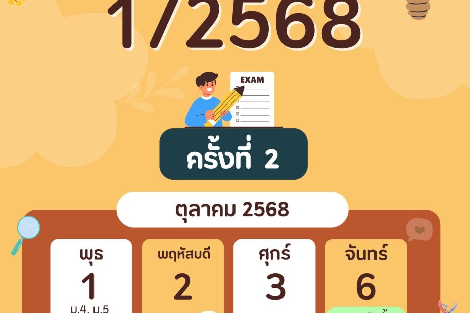 ม.ต้น และ ม.ปลาย วันที่ 1 – 3สอบปลายภาคเรียนที่ 1 /2568 ครั้งที่ 2